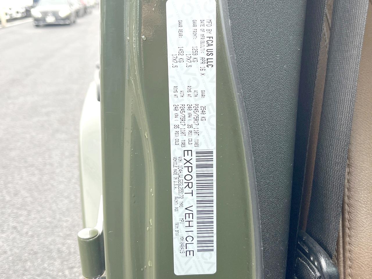 | Chassis No | 1C4HJWLG2GL255172 |