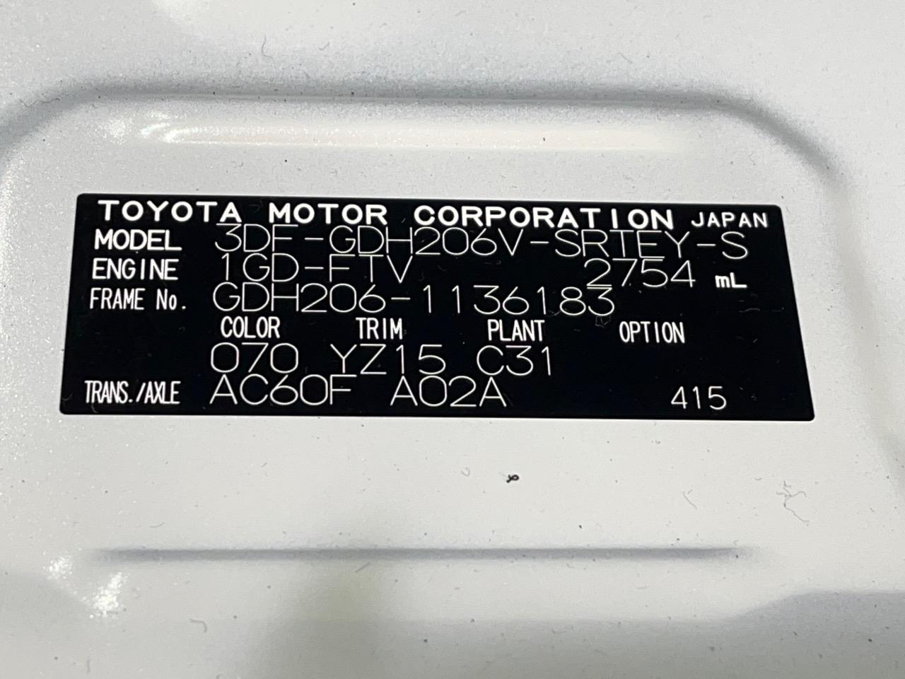 | Chassis No | GDH206-1136183 |