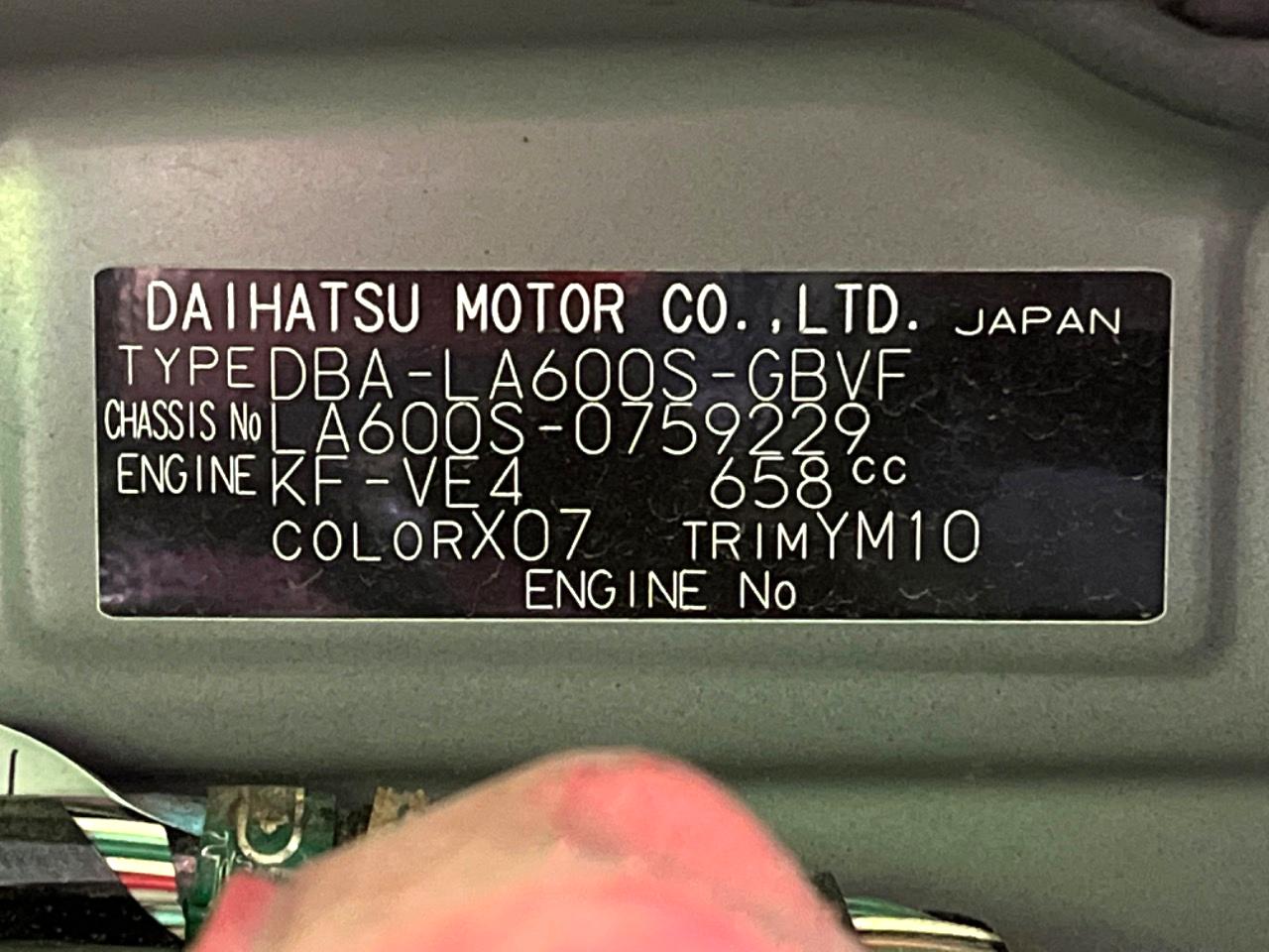 | Chassis No | LA600S-0759229 |