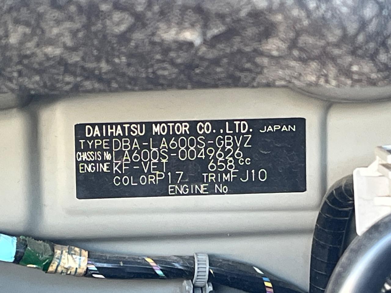| Chassis No | LA600S-0049626 |