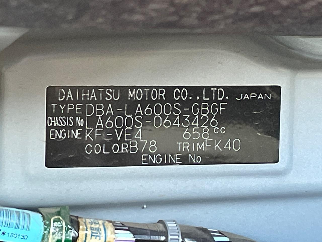 | Chassis No | LA600S-0643426 |