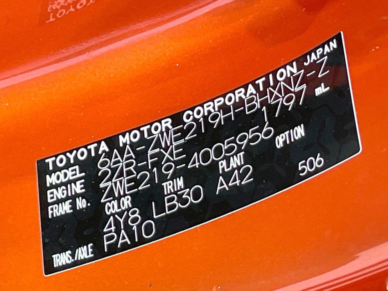 | Chassis No | ZWE219-4005956 |