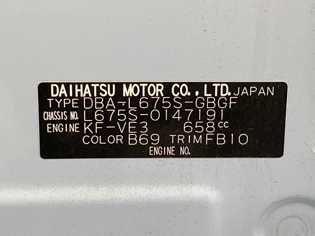 | Chassis No | L675S-0147191 |