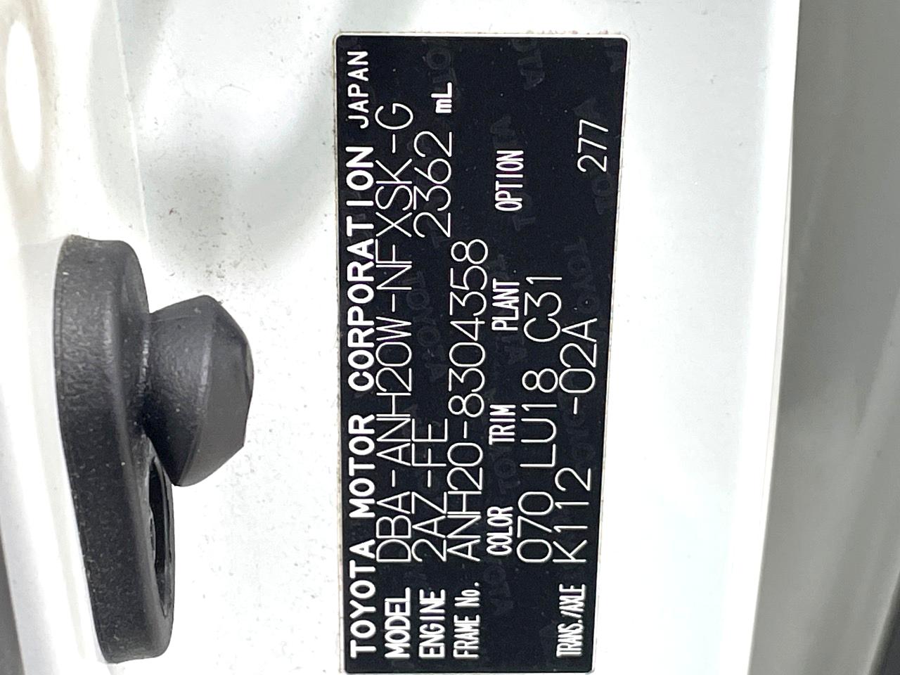 | Chassis No | ANH20-8304358 |