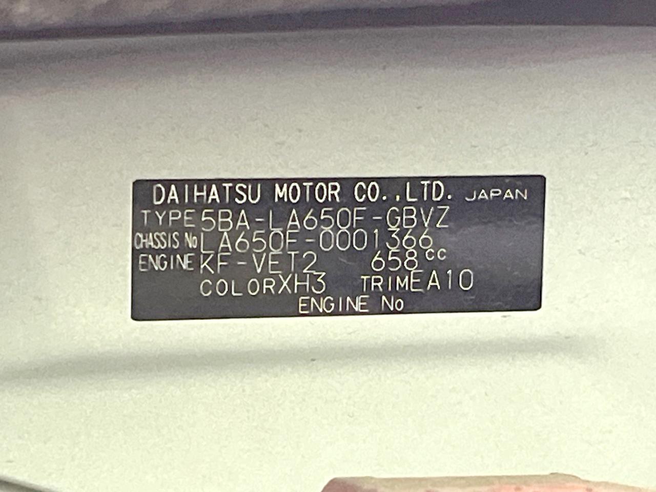 | Chassis No | LA650F-0001366 |