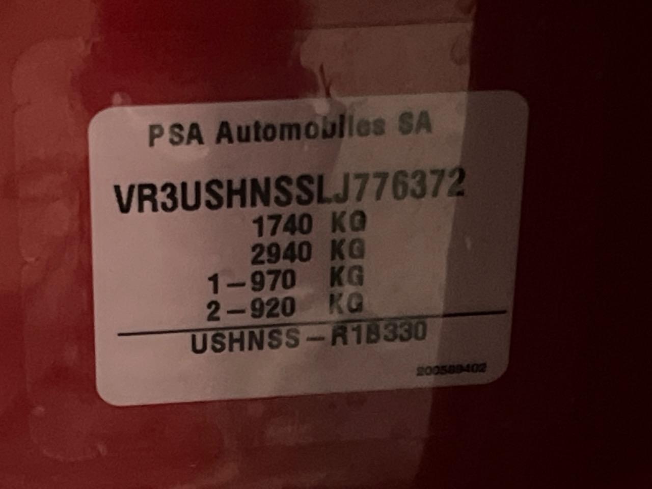 | Chassis No | VR3USHNSSLJ776372 |