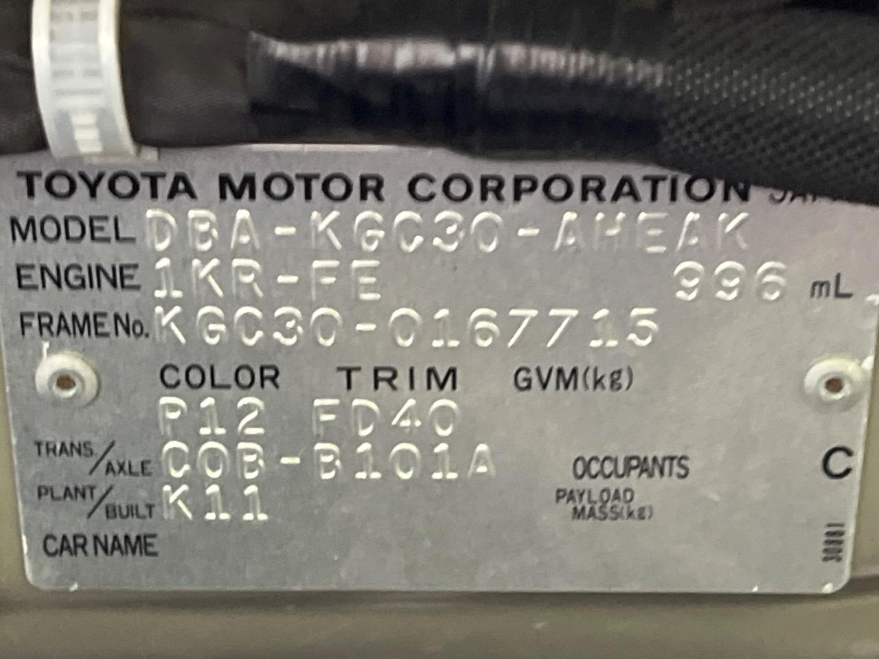 | Chassis No | KGC30-0167715 |