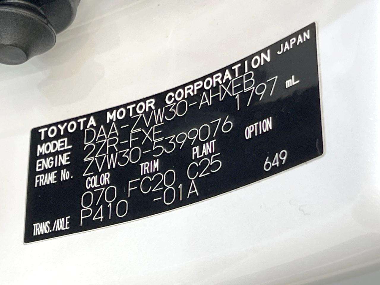 | Chassis No | ZVW30-5399076 |