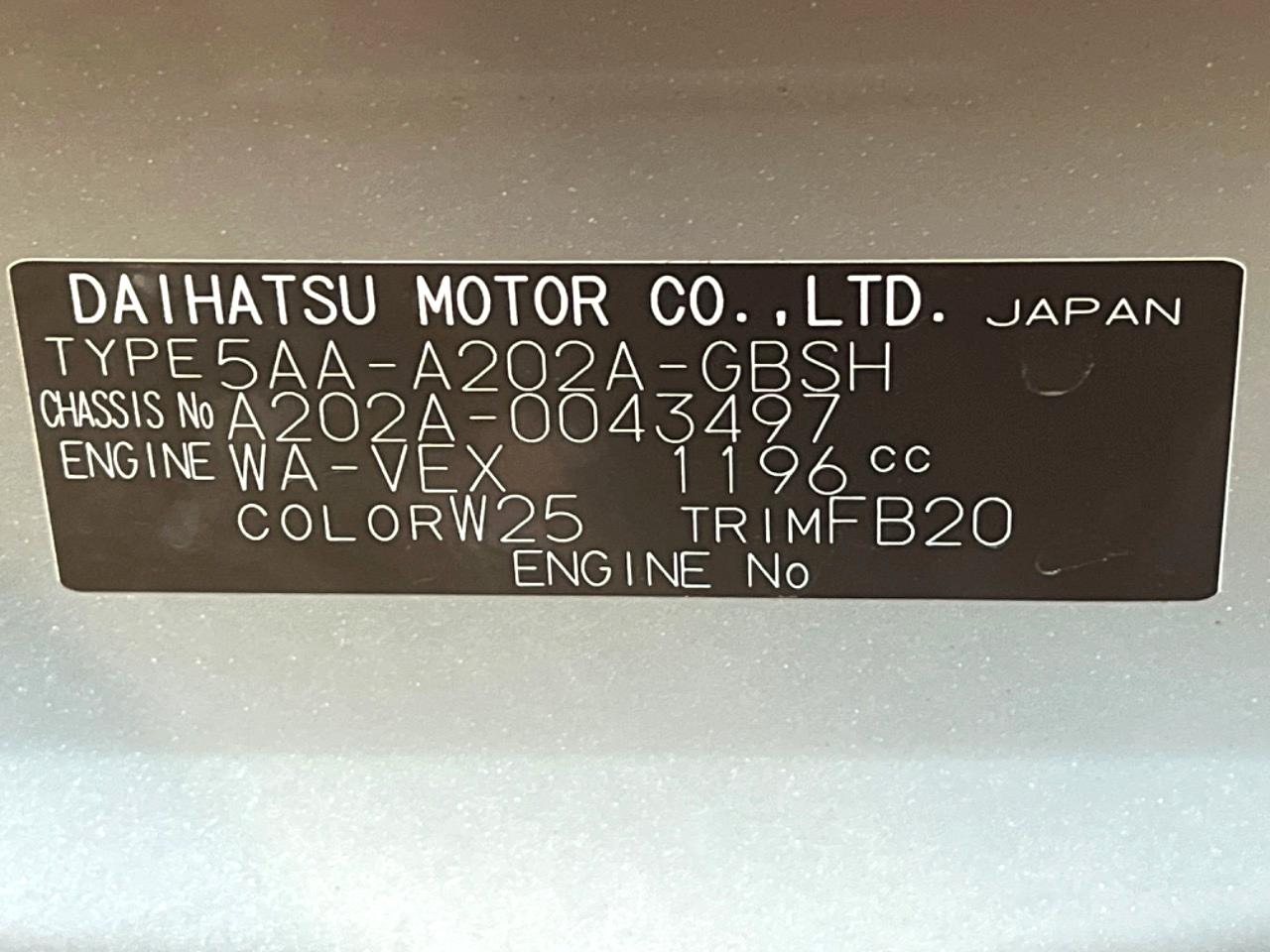 | Chassis No | A202A-0043497 |