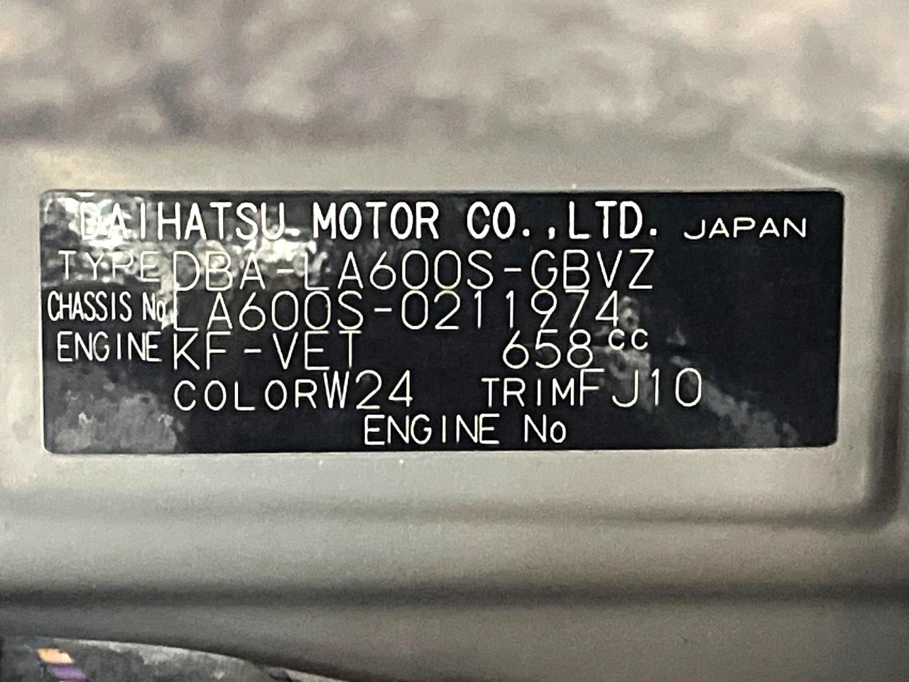 | Chassis No | LA600S-0211974 |
