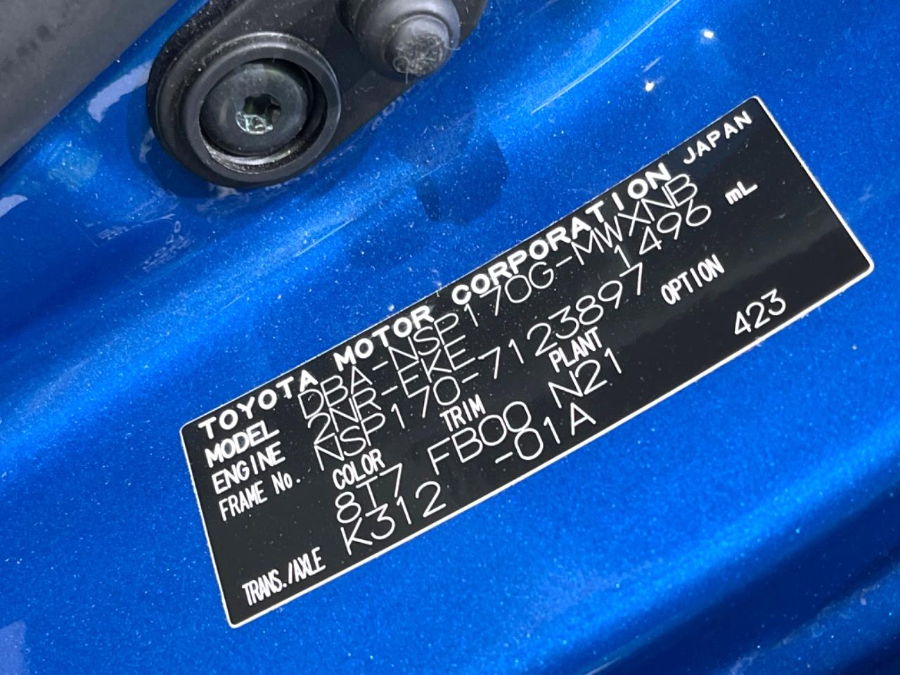 | Chassis No | NSP170-7123897 |