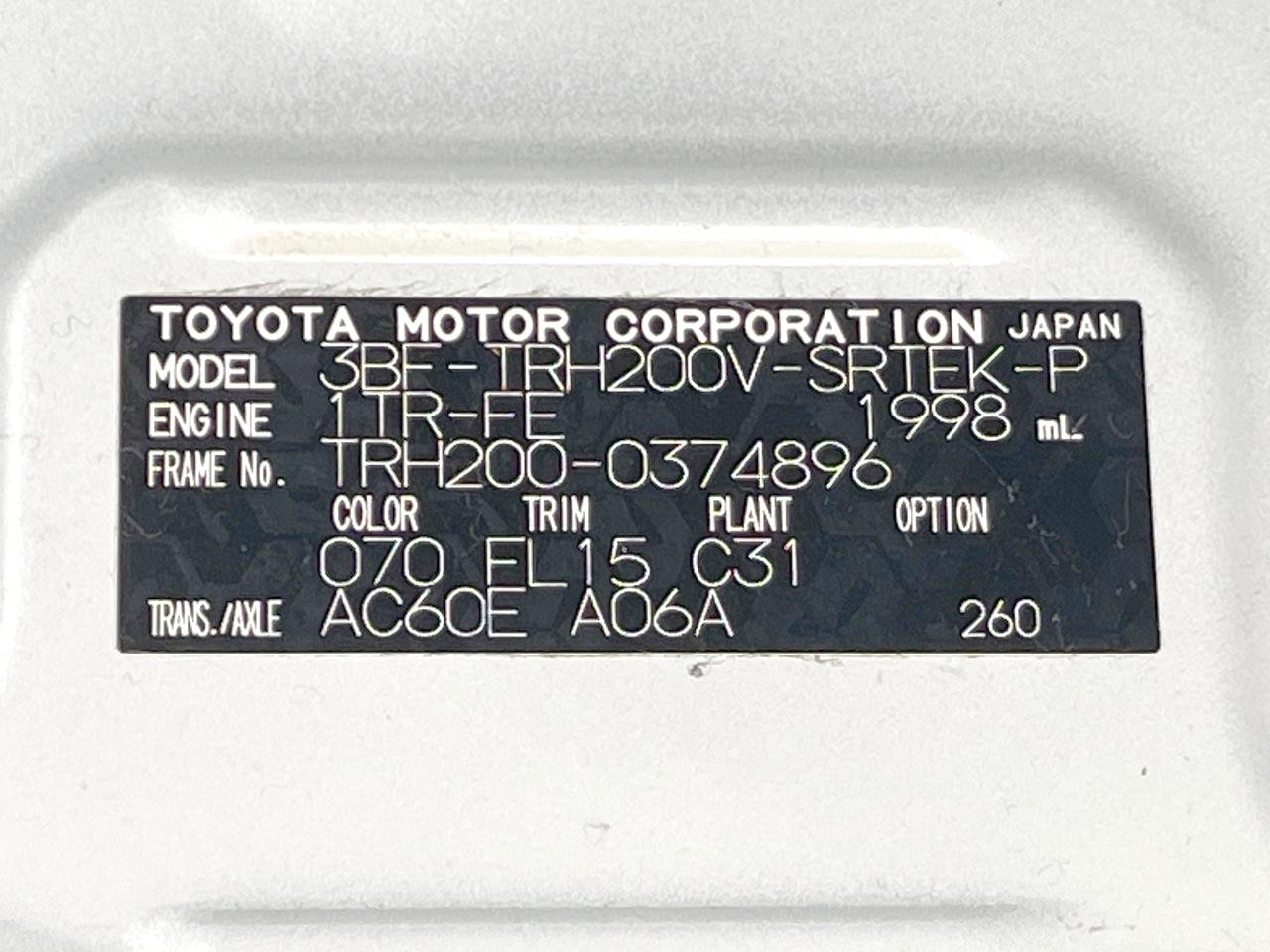 | Chassis No | TRH200-0374896 |