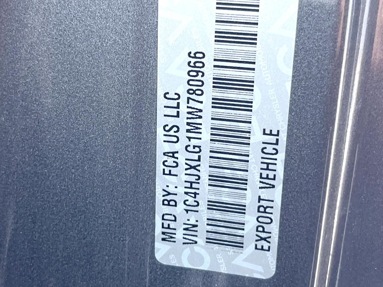 | Chassis No | 1C4HJXLG1MW780966 |