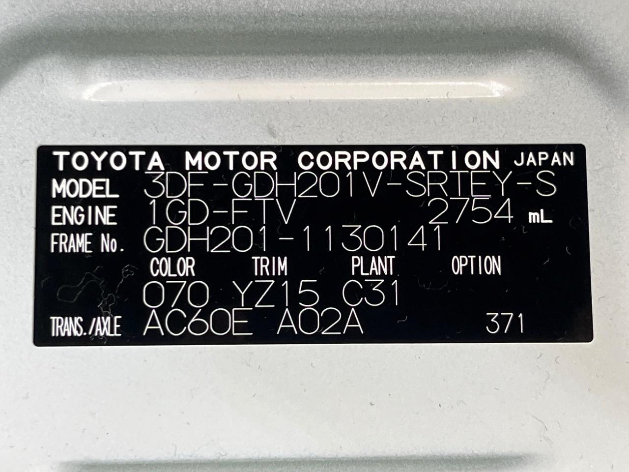 | Chassis No | GDH201-1130141 |