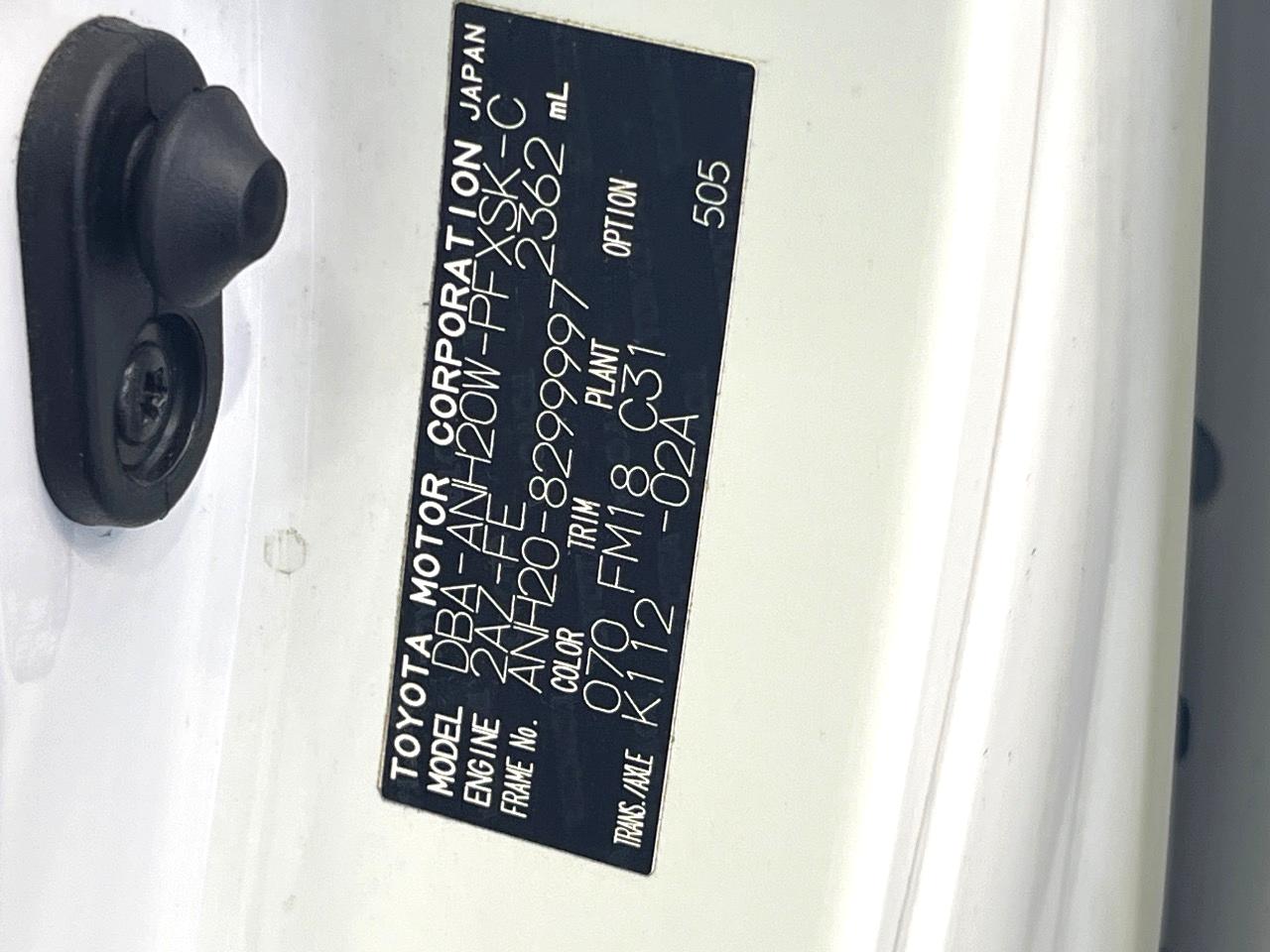 | Chassis No | ANH20-8299997 |