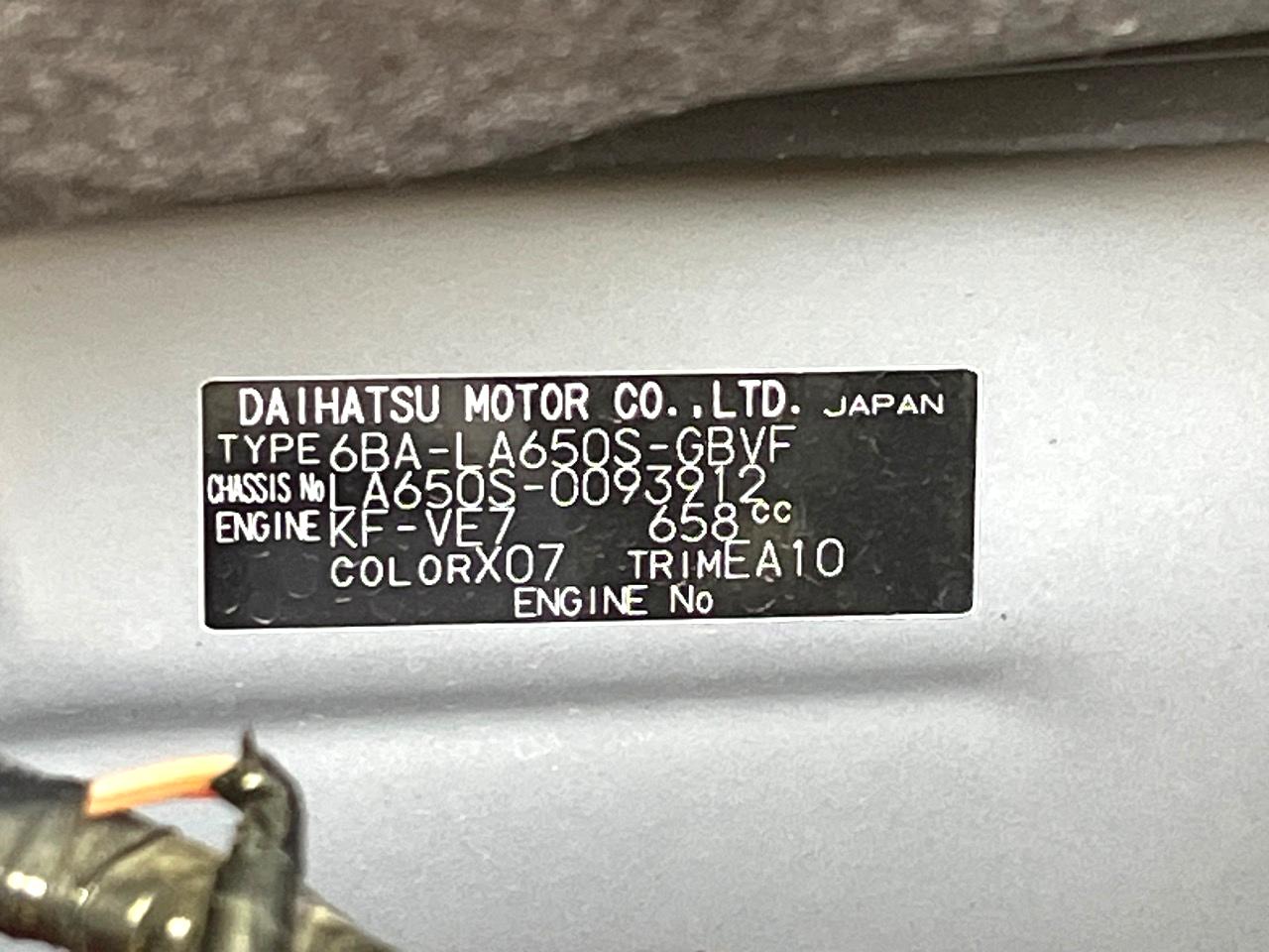 | Chassis No | LA650S-0093912 |