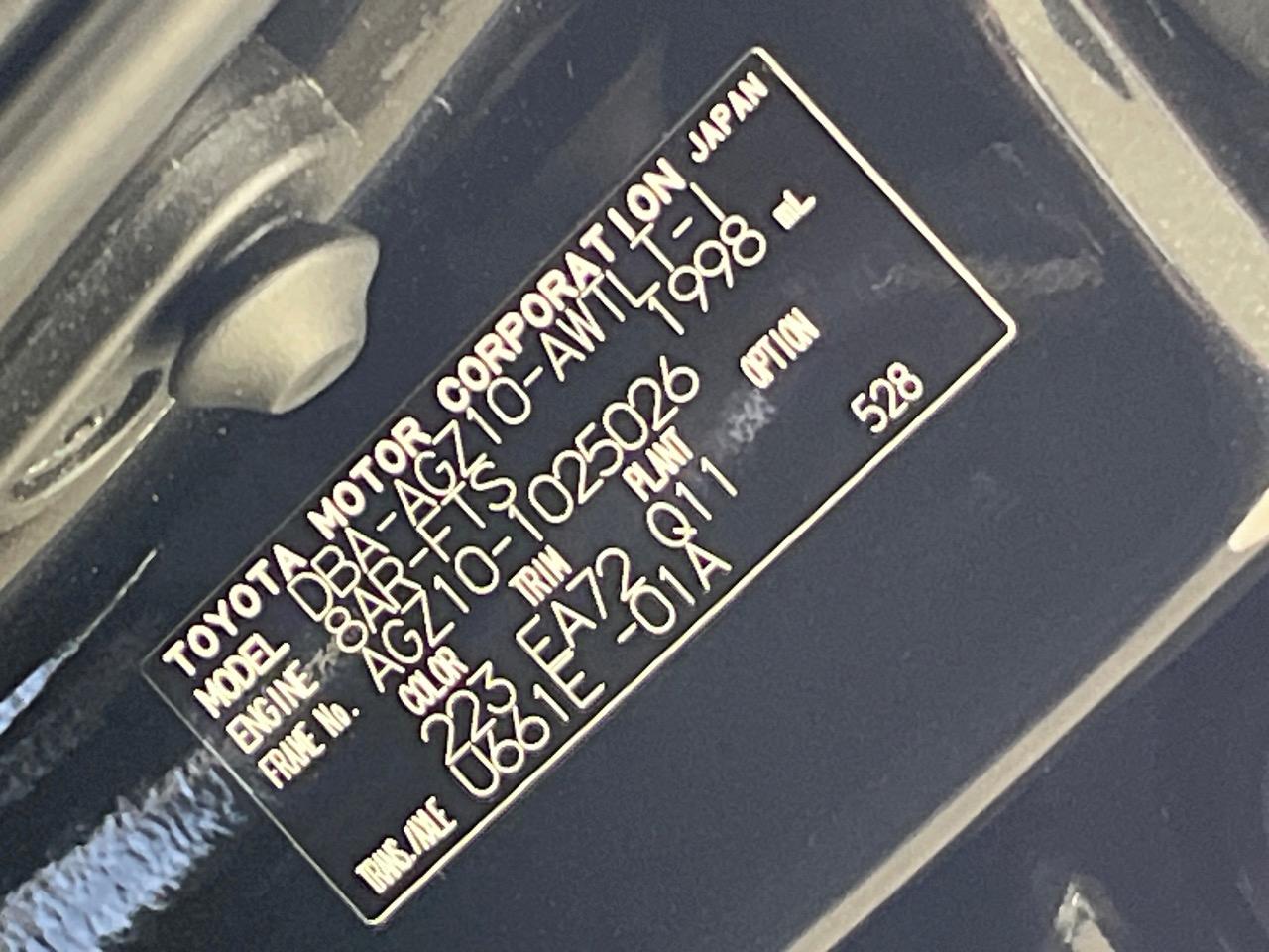 | Chassis No | AGZ10-1025026 |