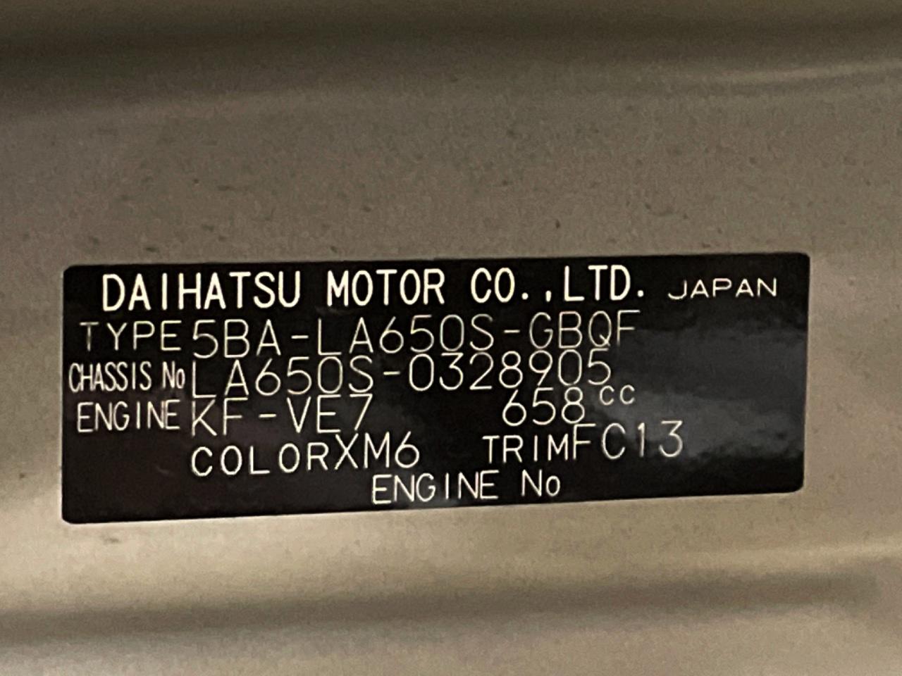 | Chassis No | LA650S-0328905 |