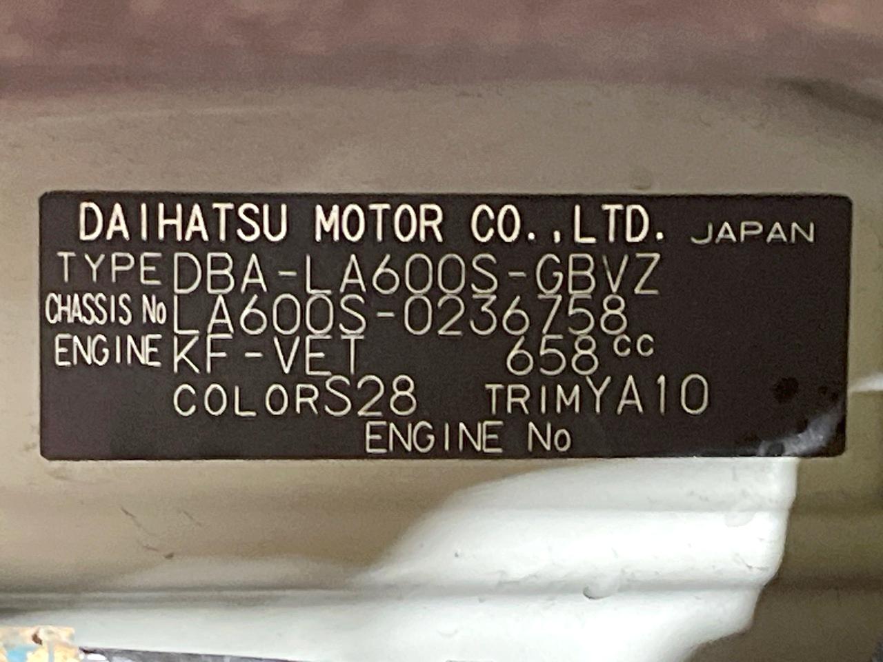 | Chassis No | LA600S-0236758 |