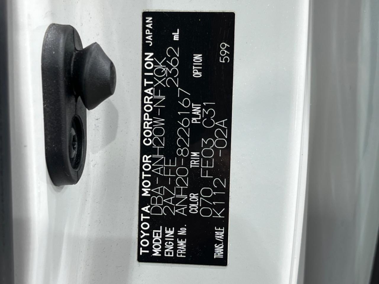 | Chassis No | ANH20-8226167 |
