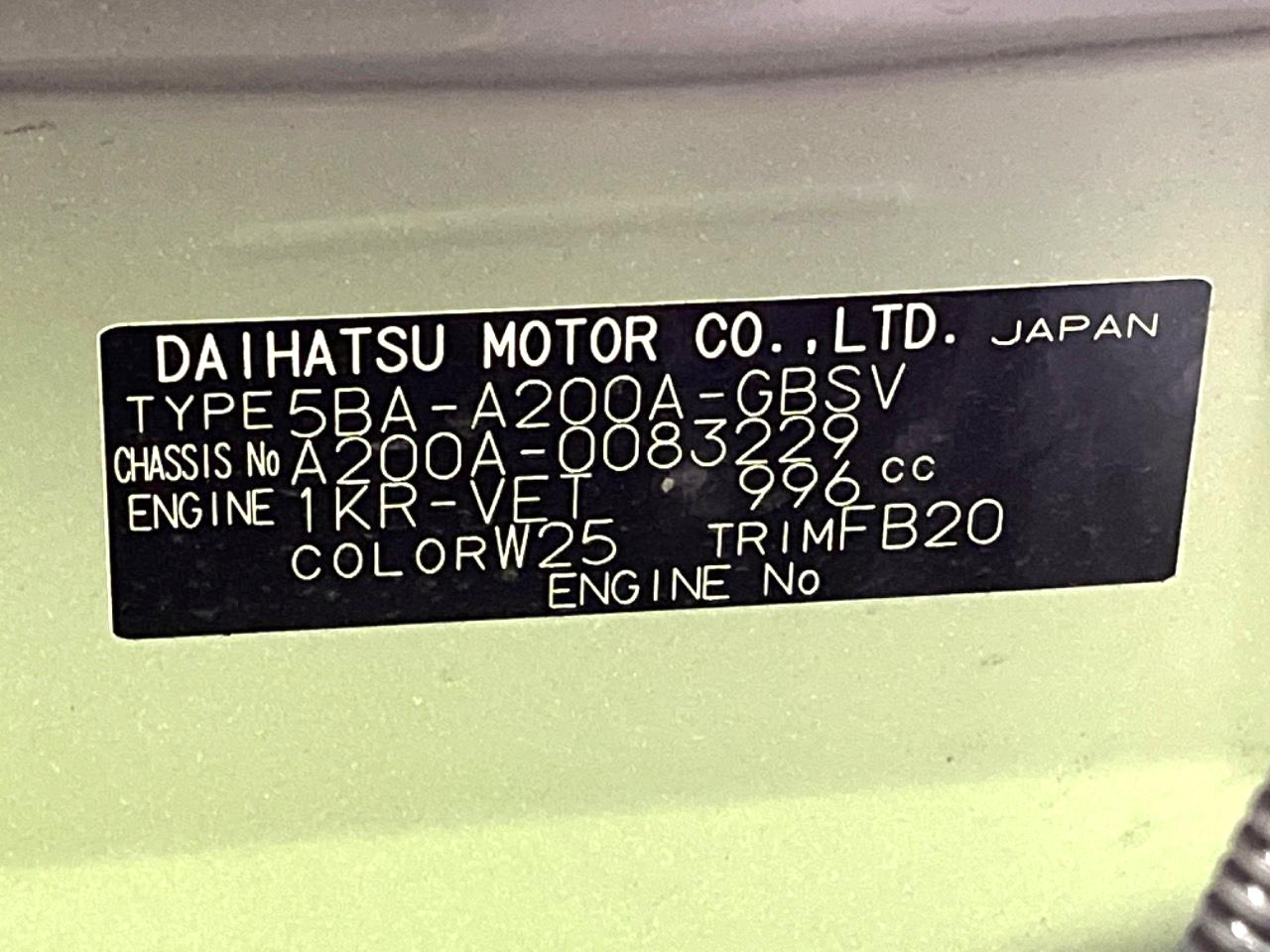 | Chassis No | A200A-0083229 |
