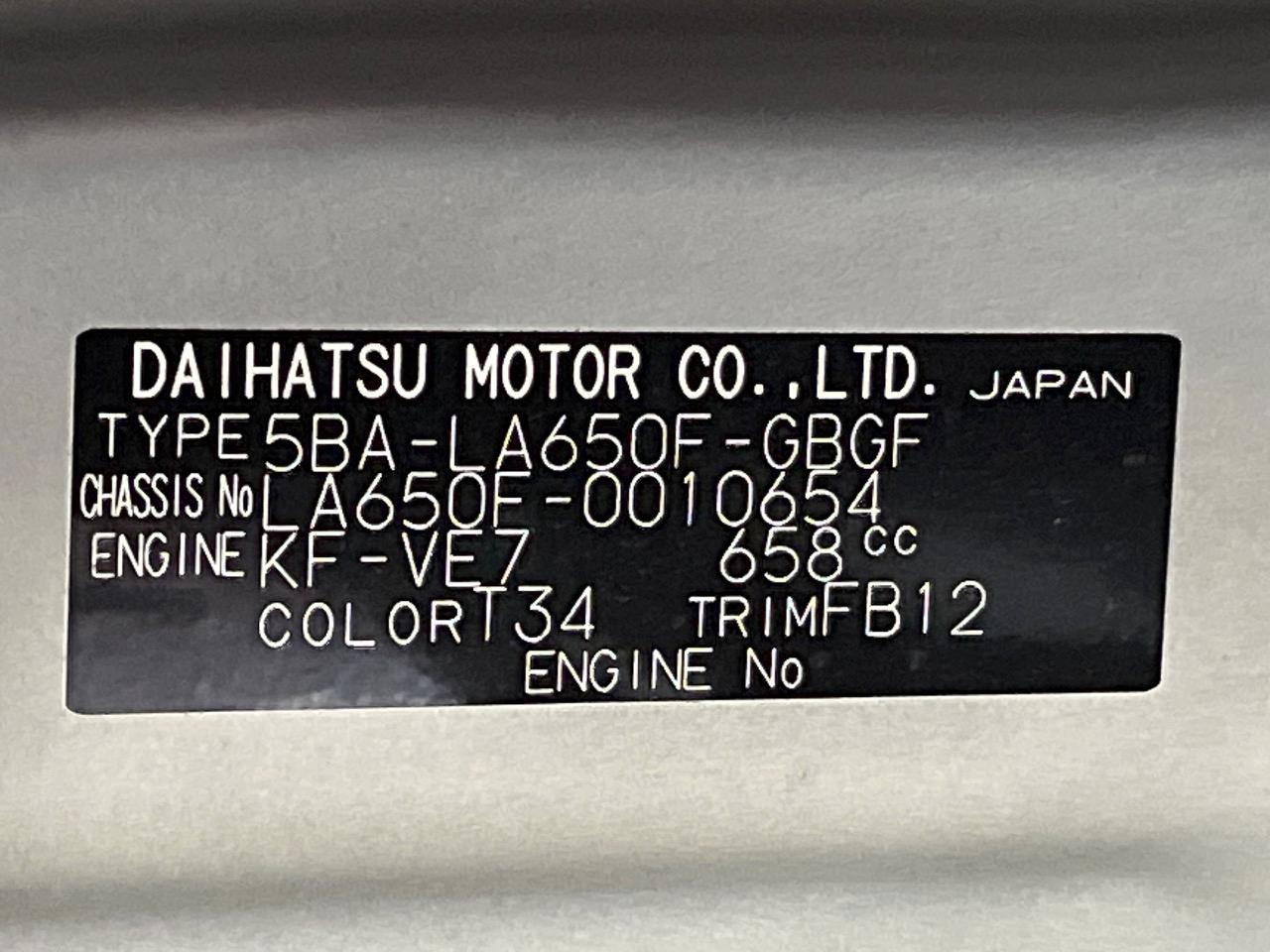 | Chassis No | LA650F-0010654 |