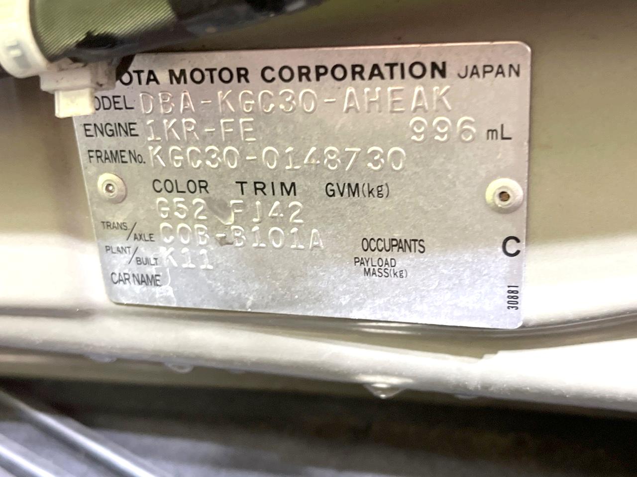 | Chassis No | KGC30-0148730 |
