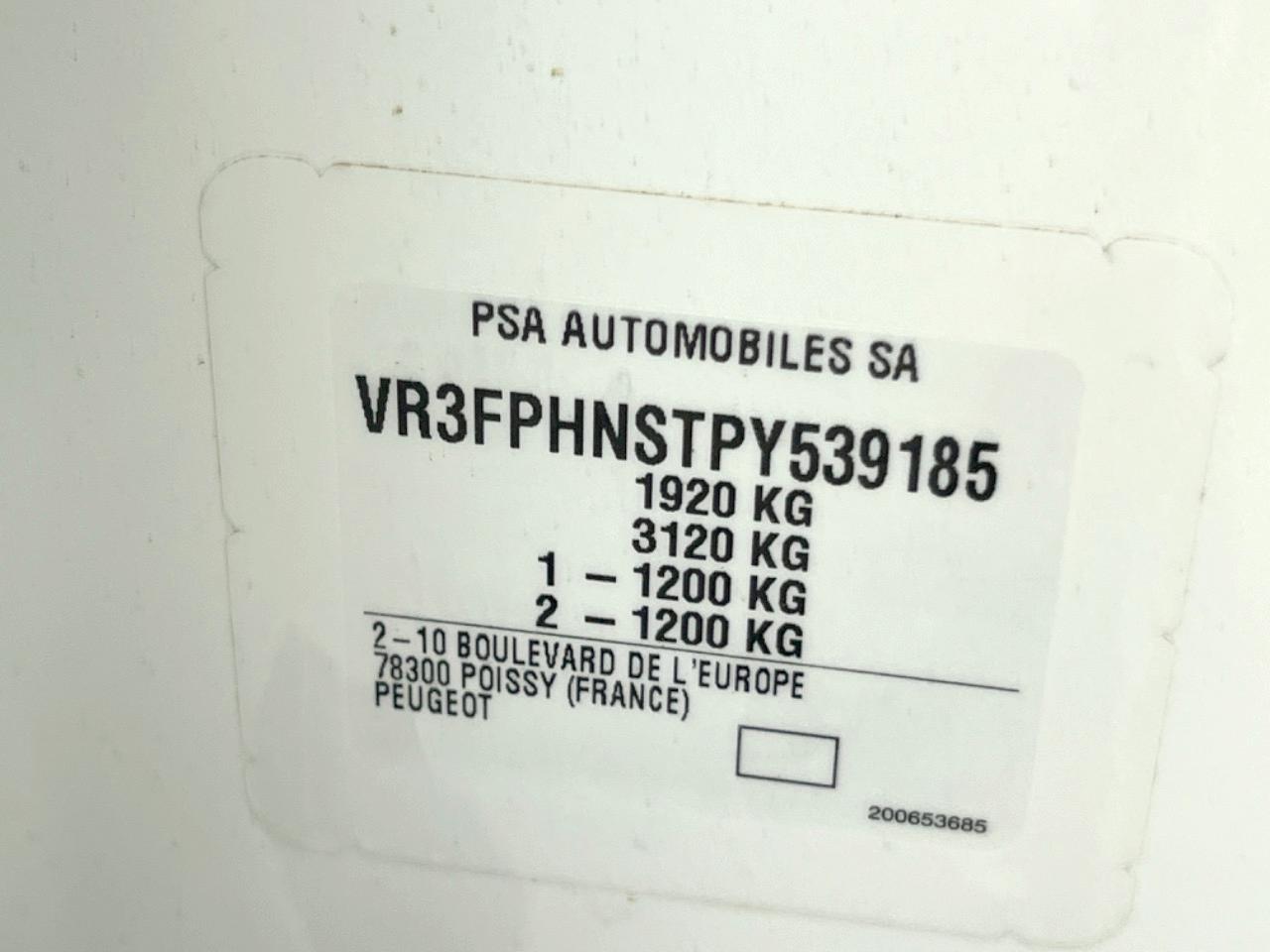 | Chassis No | VR3FPHNSTPY539185 |