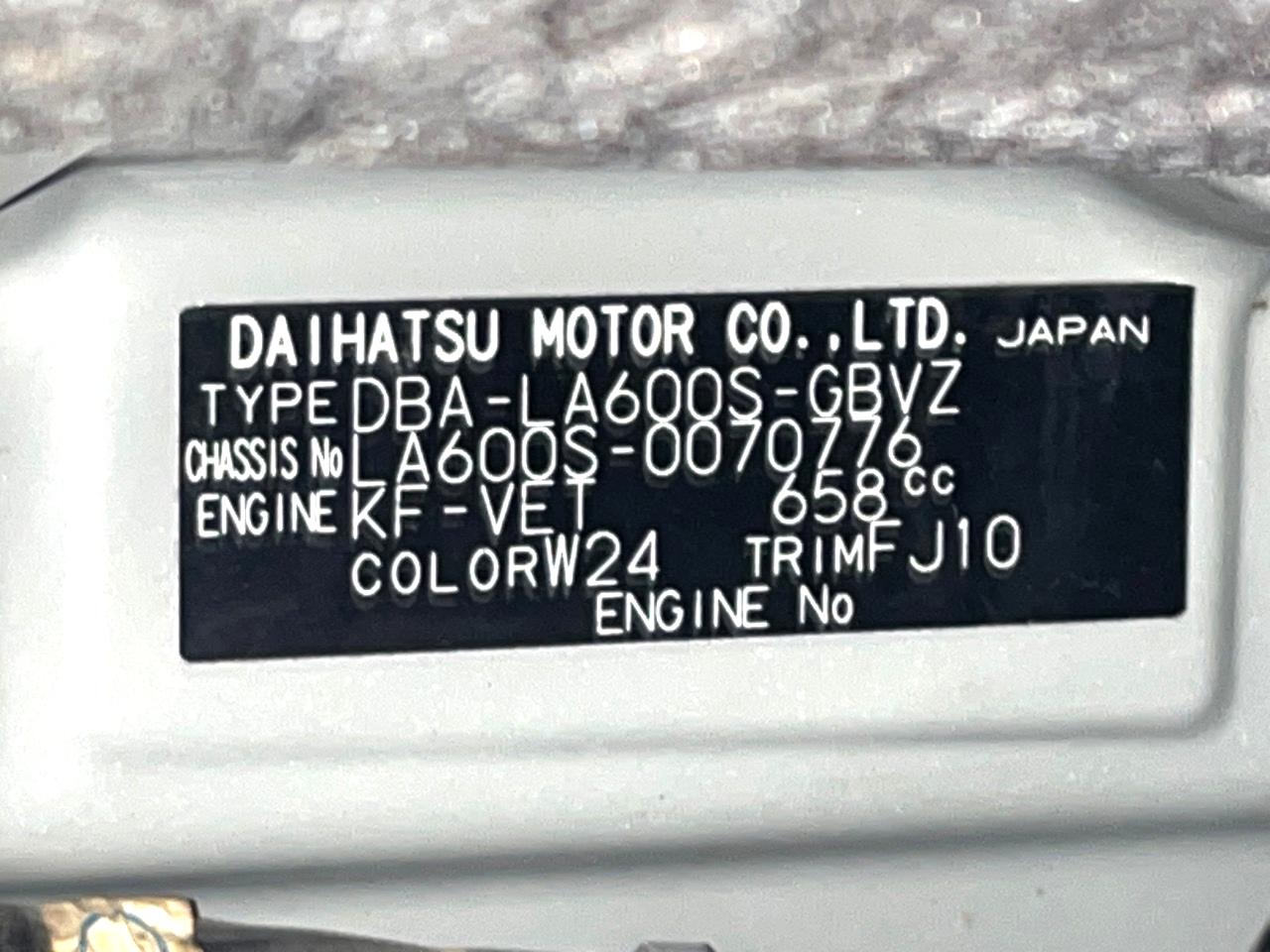 | Chassis No | LA600S-0070776 |