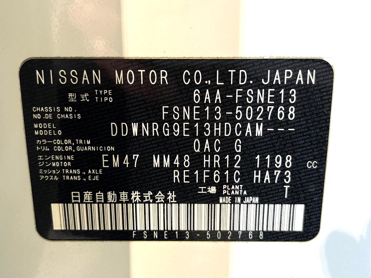 | Chassis No | FSNE13-502768 |