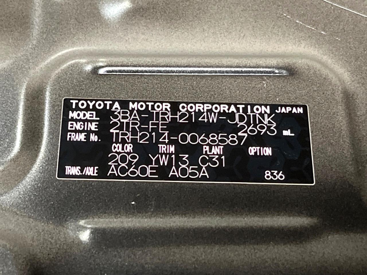 | Chassis No | TRH214-0068587 |