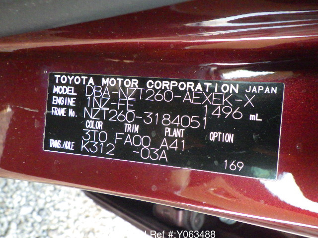 SOLD OUTRef Y063488Chassis No NZT260-XXXXXXXModelNZT260Fuel GasolineDrive 2WDTransmissATColorWINERegistration 2016/11Manufacture -Steering RightMileage 56,000kmDoors4-Engine Size 1,500ccEngine No- 2026.02.04