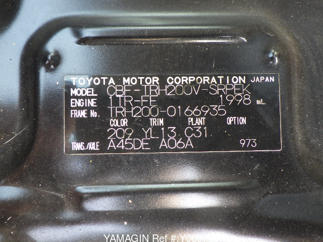 | Chassis No | TRH200-XXXXXXX |
